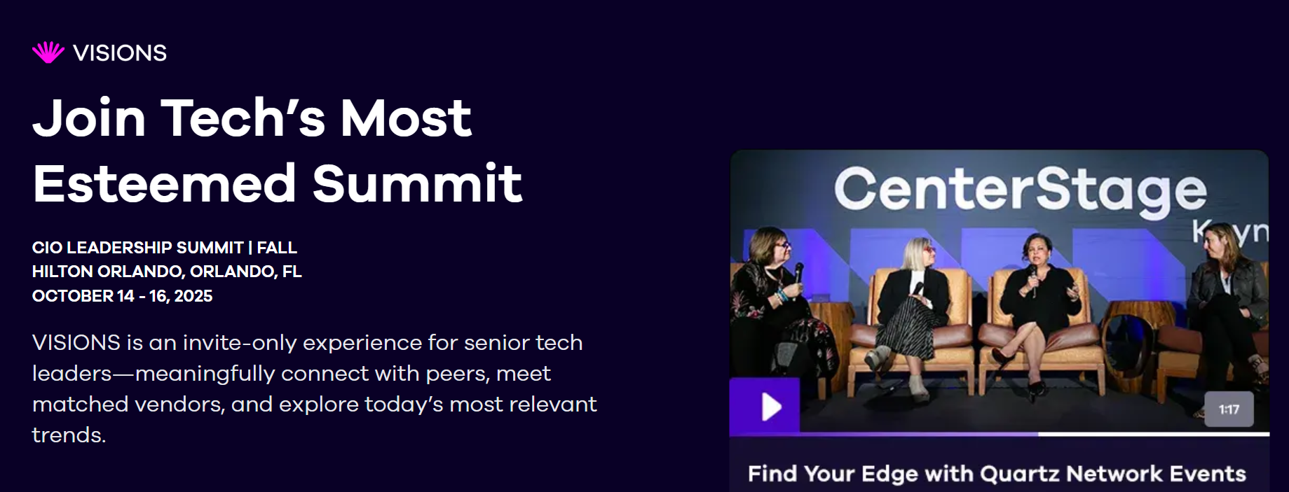 Join Quartz VISIONS CIO Leadership Summit! AirMDR is thrilled to join forces with Quartz Network as a proud Sponsor of the VISIONS CIO Leadership Summit!
